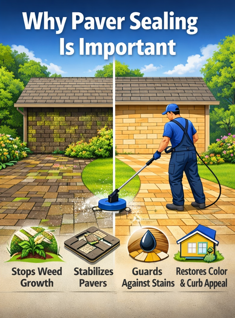 Sealing helps protect pavers from water exposure, chemical damage, and fading.